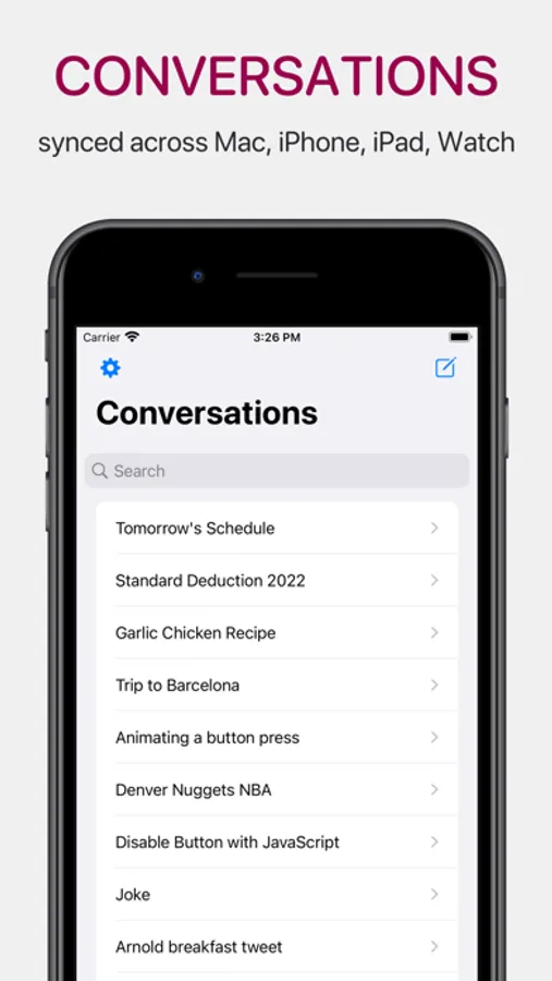 - Privacy and Convenience: All of your conversations are privately synced across your iPhone, iPad, Apple Watch, and Mac through iCloud. Your conversation history remains exclusive to you.