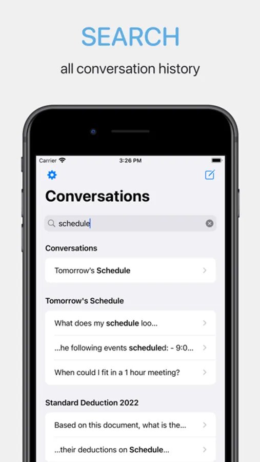 - Search Conversation History: Search all of your past conversations to find the answers you are looking for.