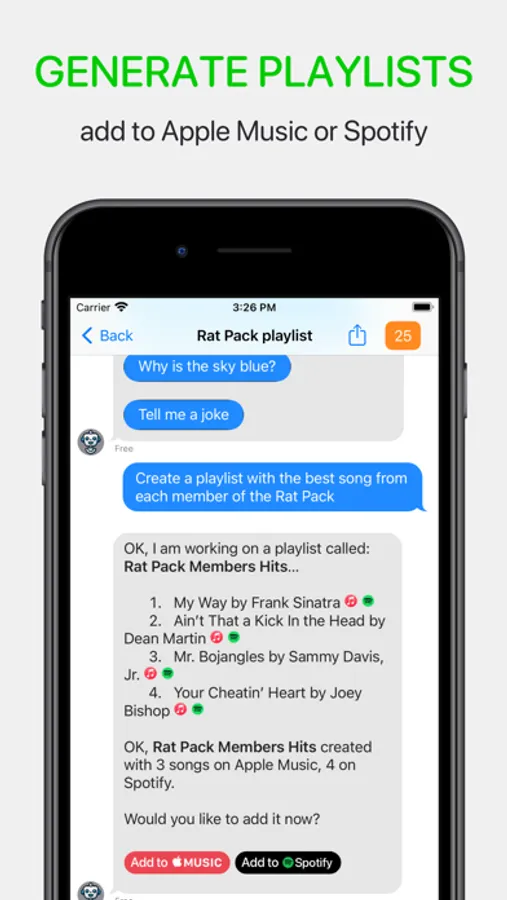 - Custom Playlists: Ask for playlists tailored to your liking, and tap a button to add to Apple Music.