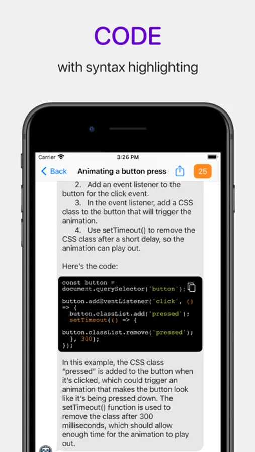- Benefit from rich markdown formatting and code syntax highlighting.