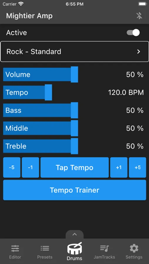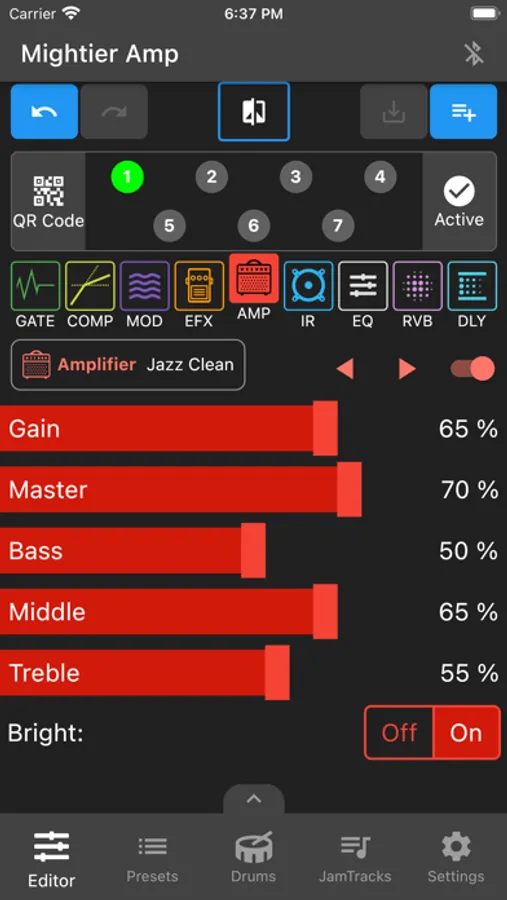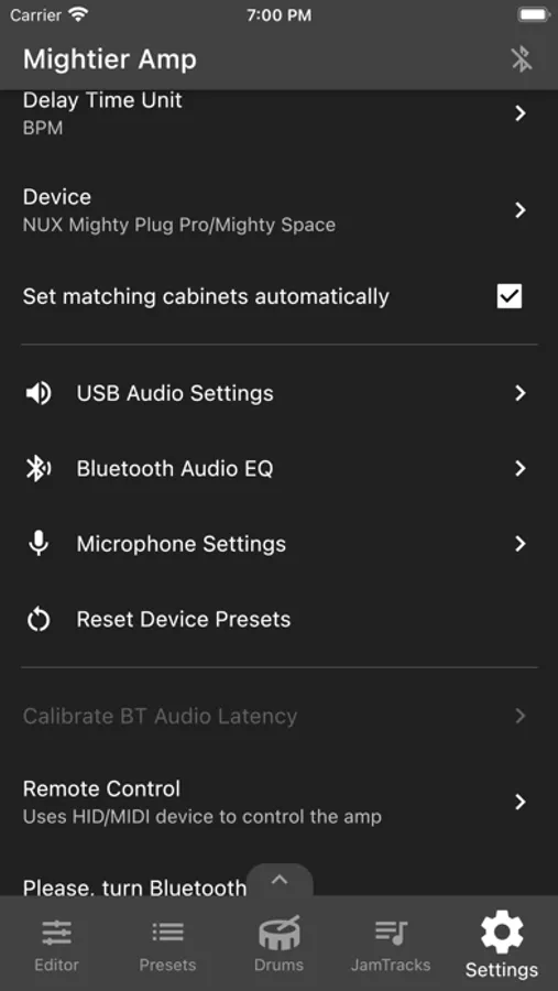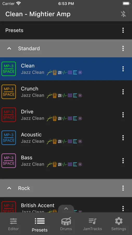 Mightier Amp is a remote control and management app for guitar amplifiers from the NUX Mighty series. It is an alternative to the official app. With Mightier Amp, you'll have all the functionality of the official app, plus many enhancements: