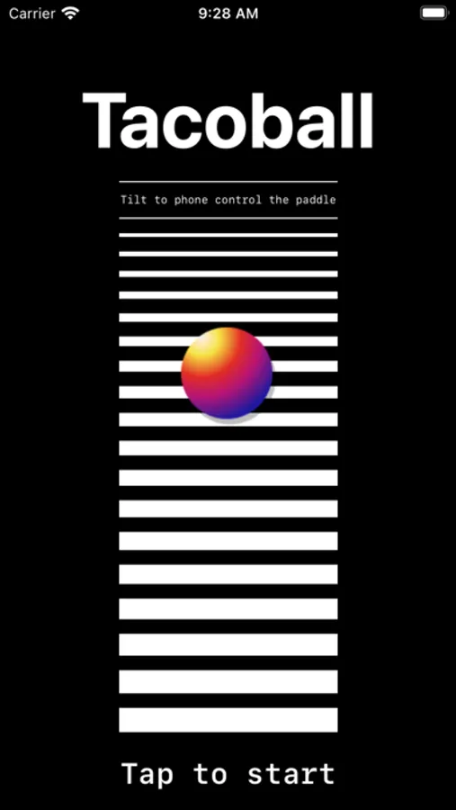 With its retro graphics inspired by old VHS tapes, Tacoball takes you back to a simpler time. The unique game that lets you play by tilting your phone! With no levels or power-ups to worry about, the objective of the game is to keep the ball bouncing by using your phone's tilt feature to move the paddle back and forth.
