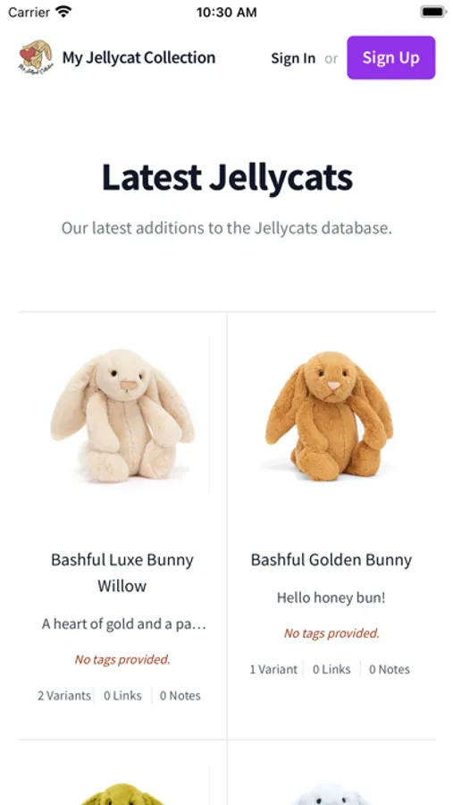 The ultimate tool for organizing and managing your Jellycat soft toy collection. This innovative app is specifically designed to help you keep track of your favorite Jellycat toys, ensuring that you never forget a single one.