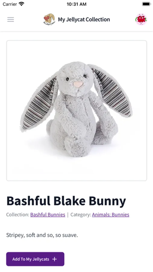 With the Jellycat Collector App, you can easily add new Jellycat toys to your collection, including their name, size, and any other relevant details. You can also upload photos of your toys and add notes about where you acquired them, how much you paid, and any special memories or stories associated with them.