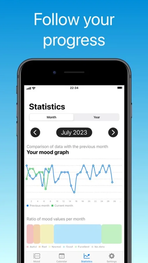 - Mood analytics. Follow your mood flow and see what affects it.