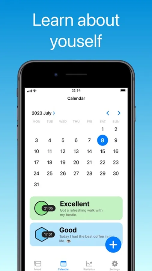 - Daily mood tracking. Record you feelings and make notes