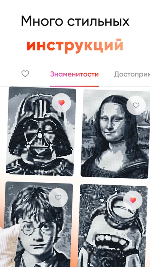 Сделайте снимок своего предмета, и наше приложение в мгновение ока создаст индивидуальную схему сборки для вашего конструктора. Ваши любимые моменты, предметы и образы теперь могут стать реальностью в виде прекрасной картины!