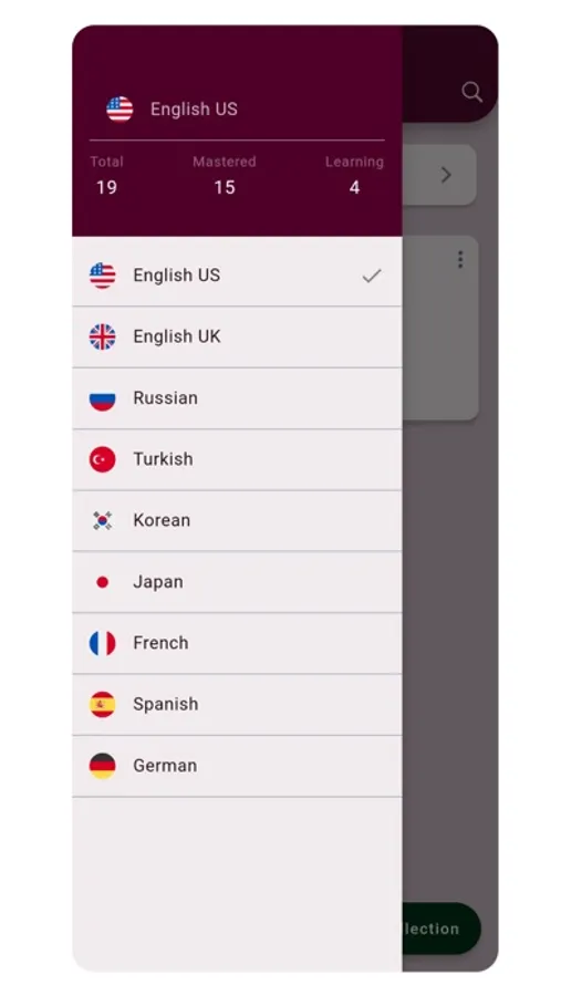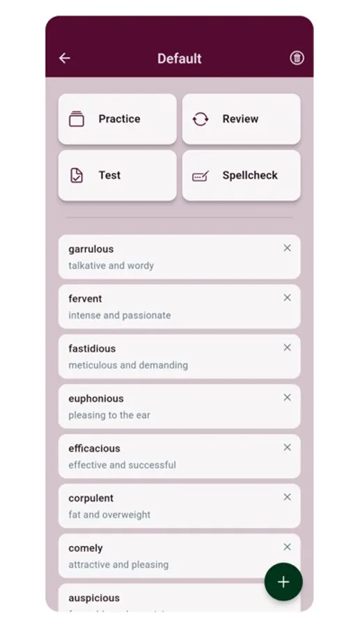 This app lets you create your own dictionary right on your phone. It supports multiple languages - English, Korean, Russian, French, Japan. There are multiple learning modes - Flash Card learning, Multiple Choice Test, Spelling Test. You do not need to write your words on a notebook anymore. You can easily learn all of your words with flashcards and keep track of your progress.