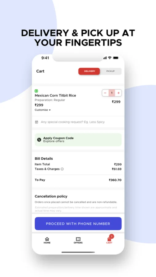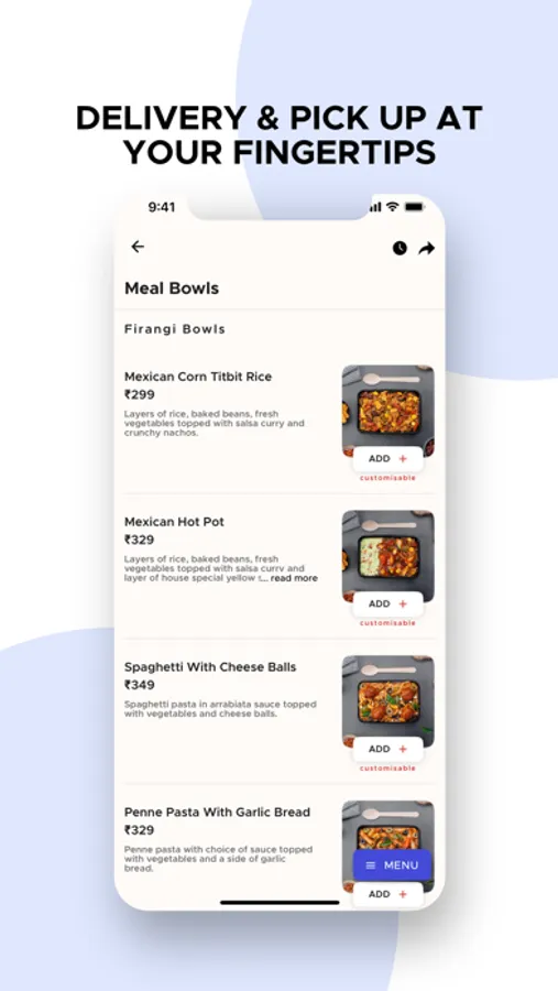 *Easy order customization -- Order from our wide range of menu and easy customisation options and addons.