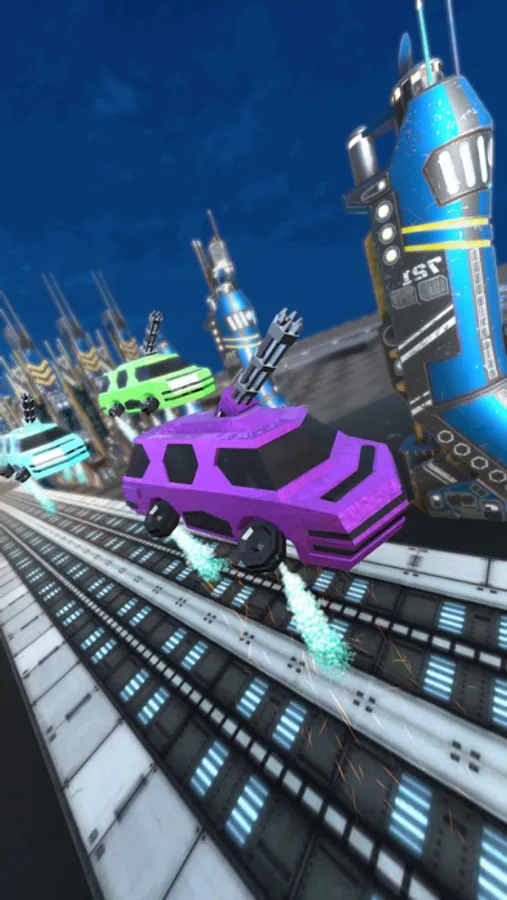 As you hurtle down the highway, you'll need to use precision aiming and quick reflexes to destroy the incoming robots before they reach you. But it's not just about shooting - you'll also need to strategic your attacks and make use of the environment to outmaneuver your enemies. With towering sci-fi buildings on both sides of the highway, there are plenty of opportunities to gain the upper hand.