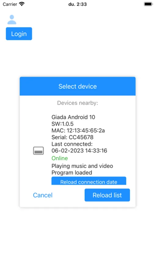You can login with your CloudCasting company account, on you can connect to a device with a specific password.