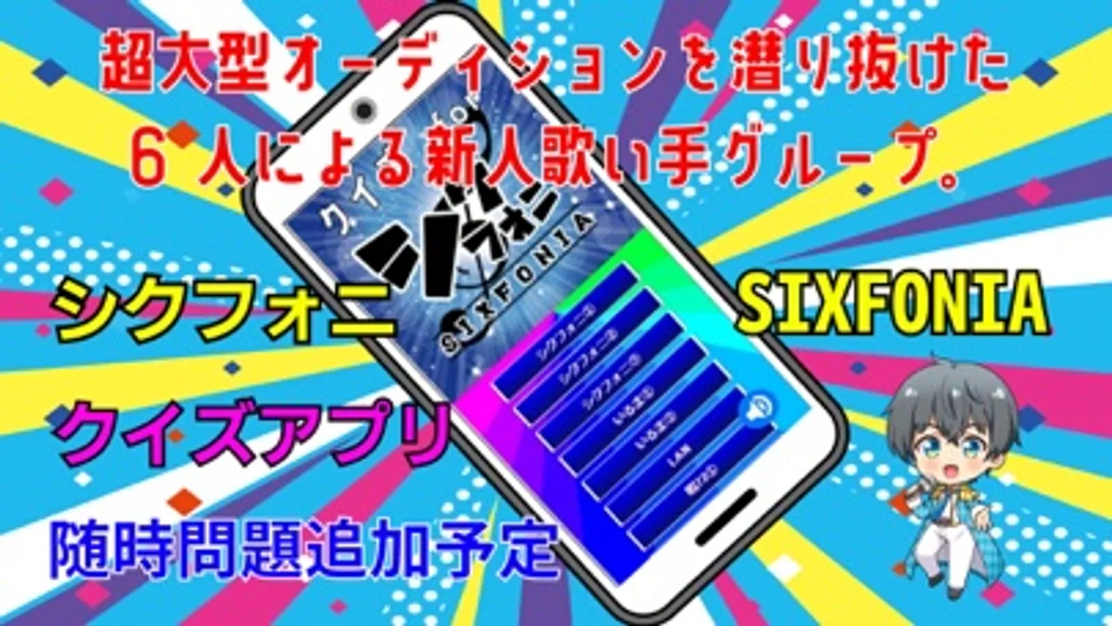 大人気歌い手グループ 「シクフォニ(SIXFONIA)」に関するクイズアプリです。