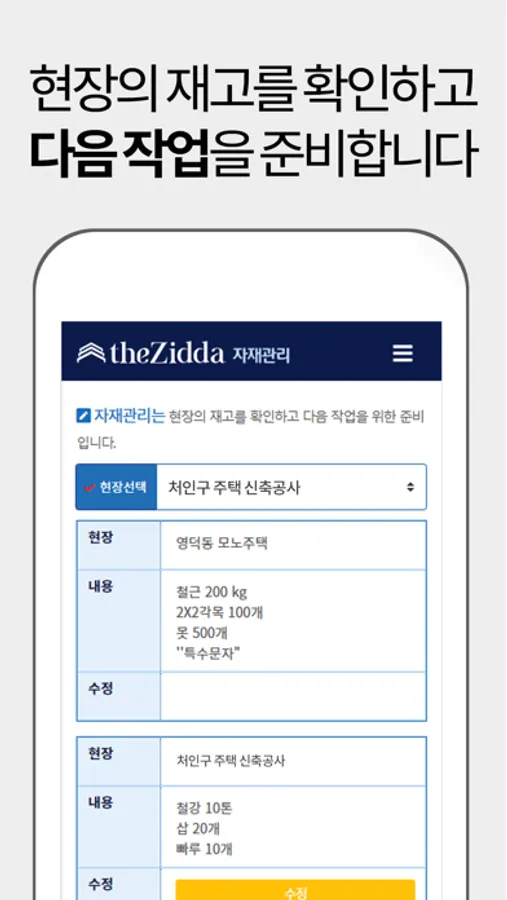 소규모 건축공사, 현장관리를 THE ZIDDA로 관리하세요. 건축주, 감리자, 시공사의 입장에서 제작 하였습니다.