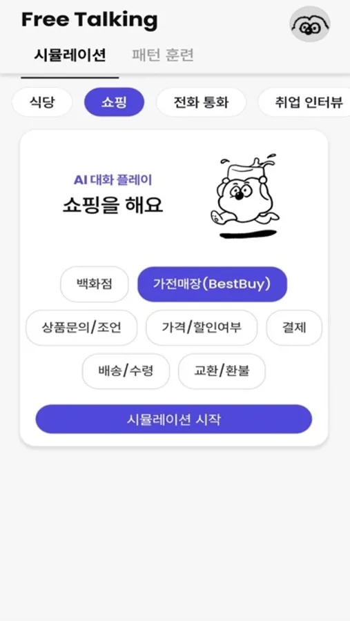 This is an AI GPT-based English free conversation training app that specializes in practical conversations! It is a service that allows you to simulate real-life situations based on situational conversations and frequently used sentence patterns.