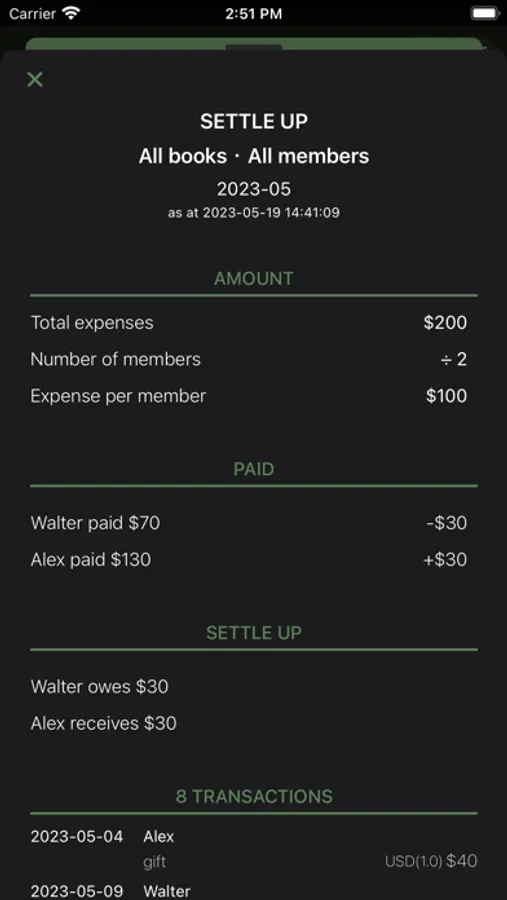 Split to let you know who paid what, and how to settle it up.