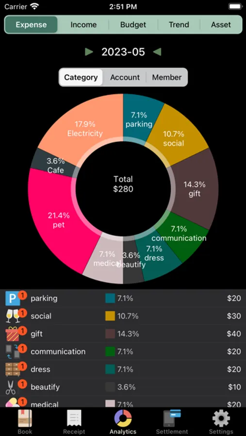 Expendee will help you control your expense by setting up a budget plan that fits your purpose.
