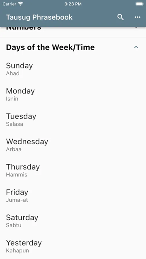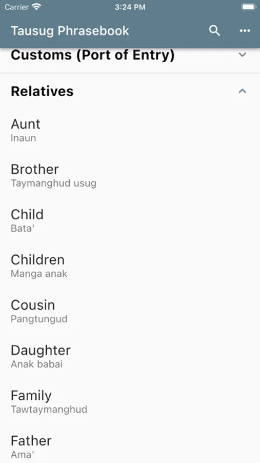 Using this app, you can select an English phrase and view its translation and how to pronounce it in Tausug.
