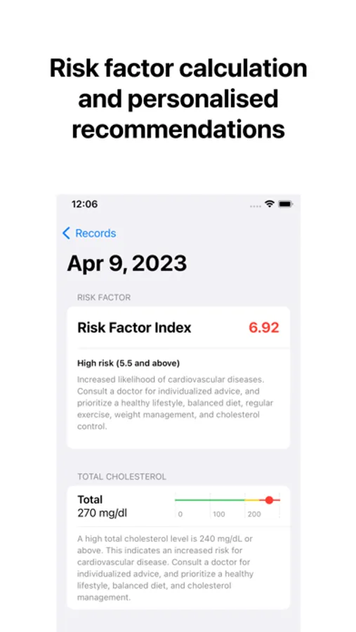 2. RISK FACTOR CALCULATION: Stay informed about your cardiovascular risk with our app's built-in risk calculator, which provides insights into your overall heart health based on your cholesterol parameters.