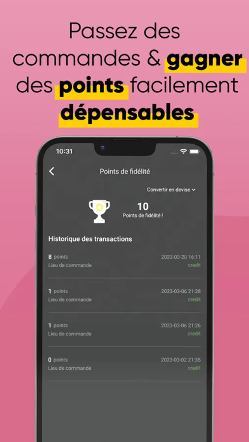 Vous pouvez accumuler des points à chaque commande et les échanger ultérieurement pour acheter l'un de nos produits ou services.