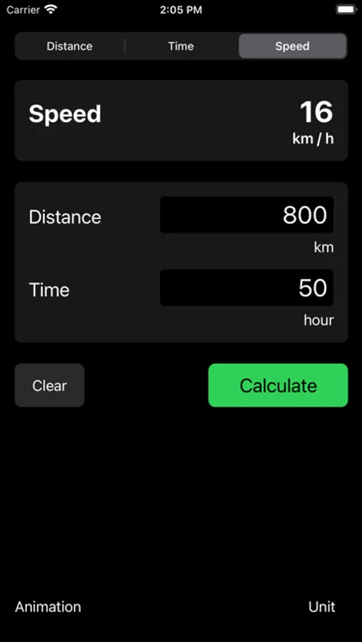 This app deals with the problem about distance, time and speed. When two values are in, you can get the remaining one by calculating automatically.