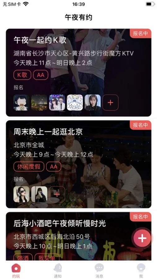 【发布活动】发布你的午夜有约活动,可以是任何你想要发起的活动,例如一起喝一杯、一起看电影、一起玩桌游、一起K歌等等...