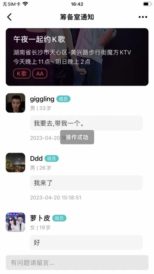 【活动筹备室】参与活动的小伙伴可以在活动筹备室相互交流,这有助于大家彼此了解和帮助组织者提前安排活动和行程。