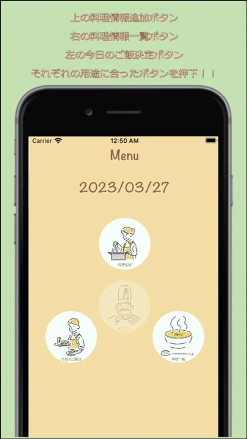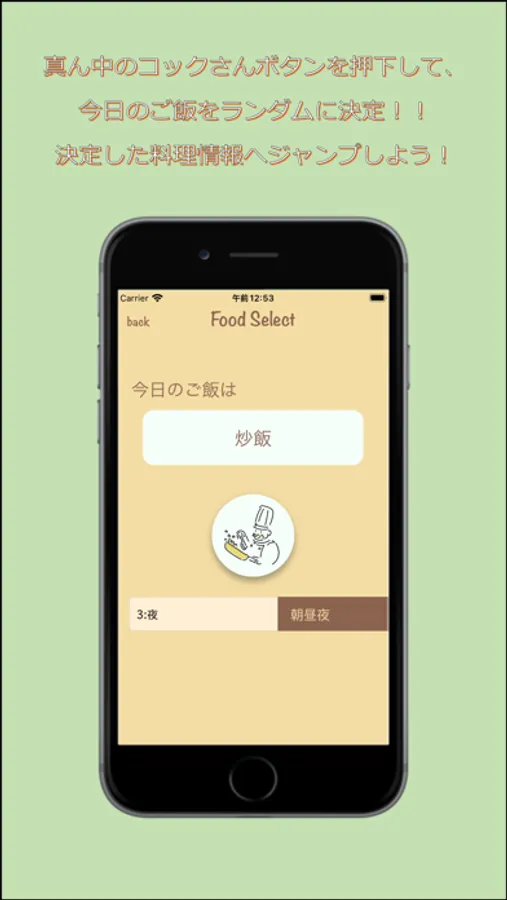 本アプリで提供している「今日のご飯画面」は登録しているレシピからランダムで、