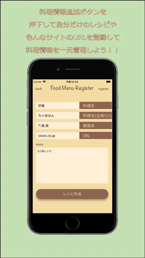 本アプリでは、登録するレシピにURLを付けることが可能なため、