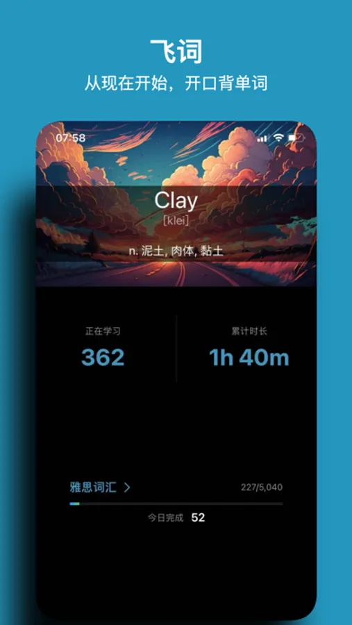 飞词提供了一个更加互动的方式的背单词,让你更能体验到学英语的乐趣。