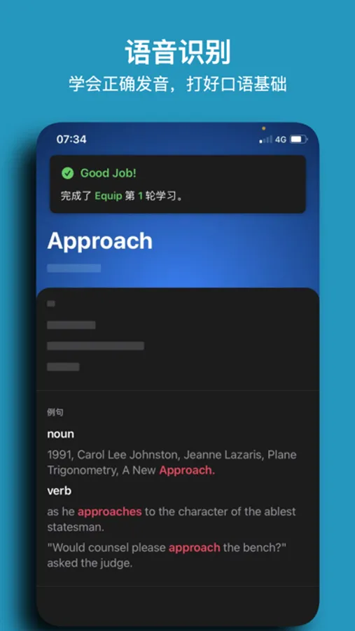 背了很久英语单词,为什么口语还是不好?因为传统的背单词方式更适用于阅读为主的英文考试。例如:一个认识很久的单词可能只知道意思却不知道怎么读,或者单词发音一直是错的而不自知。飞词可以帮你解决这些问题,内置的语音识别可以纠正发音,创新的算法帮你科学合理的安排学习计划,配合有趣的通关式背单词方法,让你快速高效记住一个单词的发音,定义和用法。