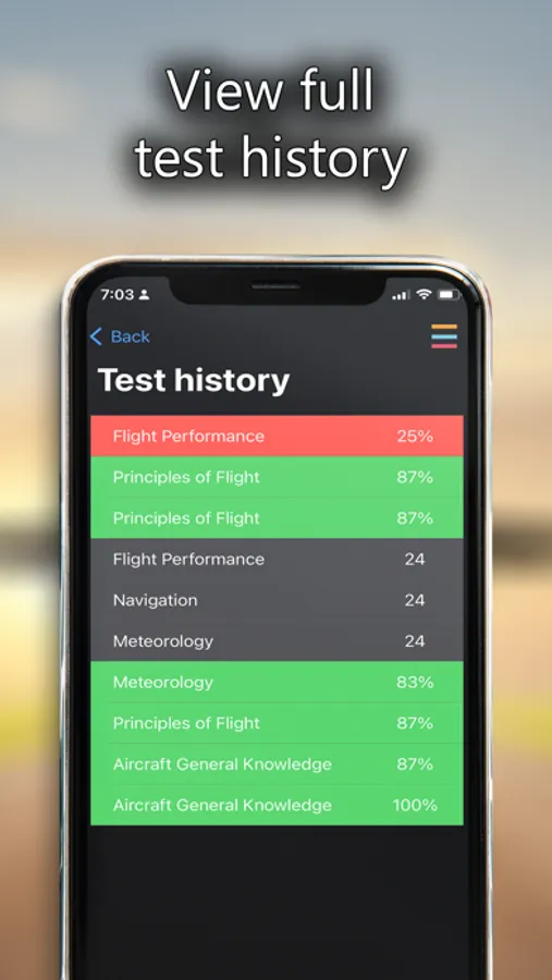 Share your progress with your ground school instructor through our website. Your instructor can review your test history and track your progress. Flight schools can view student and instructor reports.