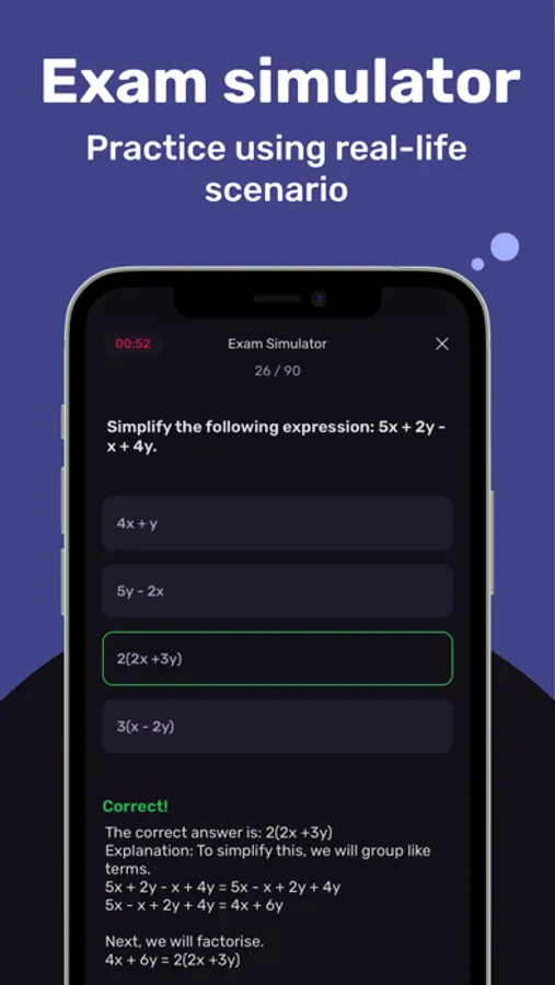 Practice in conditions similar to the real exam. Check your knowledge and get a sense of your predicted score.