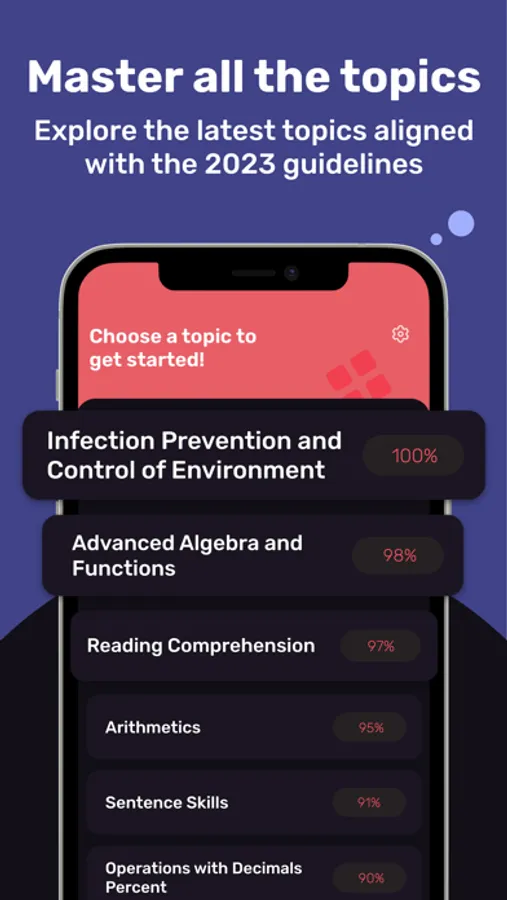Get your Accuplacer score prediction based on how you pass the real exam simulator, and study the topics you need to revisit to improve your score.