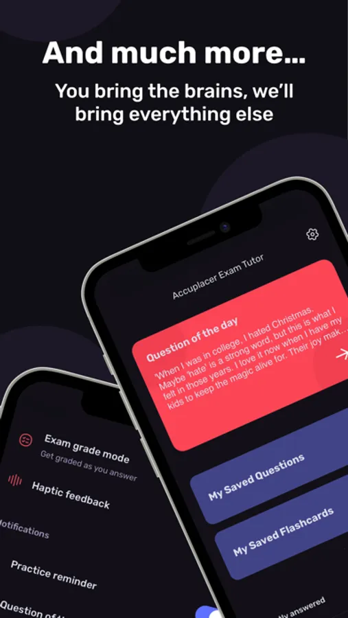 Exam Tutor is the easiest, fastest, and most fascinating way to prepare for the Accuplacer Exam. Learn with personalized practice questions, flashcards, and in-depth explanations that directly align with the 2023 Accuplacer guidelines.