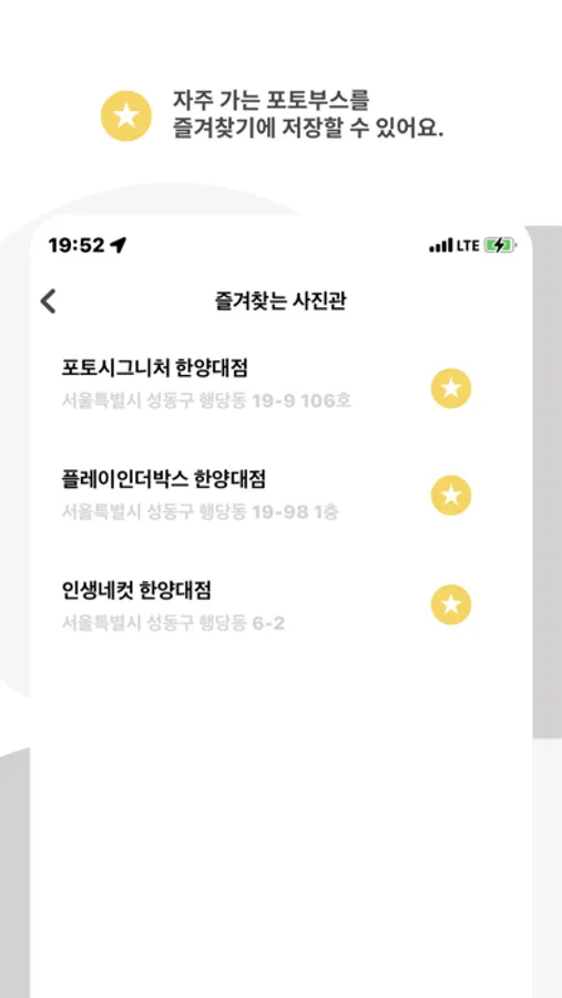 - 포토부스를 즐겨찾기에 저장하고, 확인할 수 있습니다.