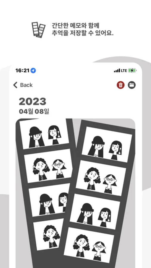 - 간단한 메모와 함께 네 컷 사진을 저장 할 수 있습니다.