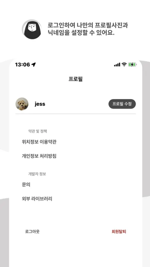 - 로그인하여 나만의 프로필사진과 닉네임을 설정할 수 있습니다.