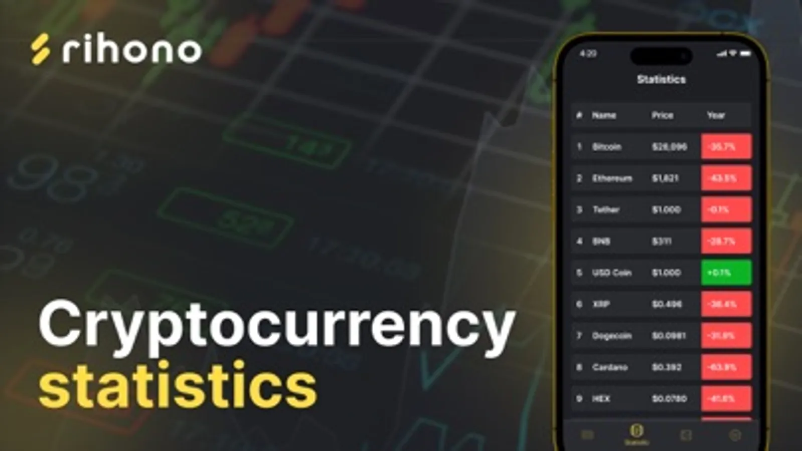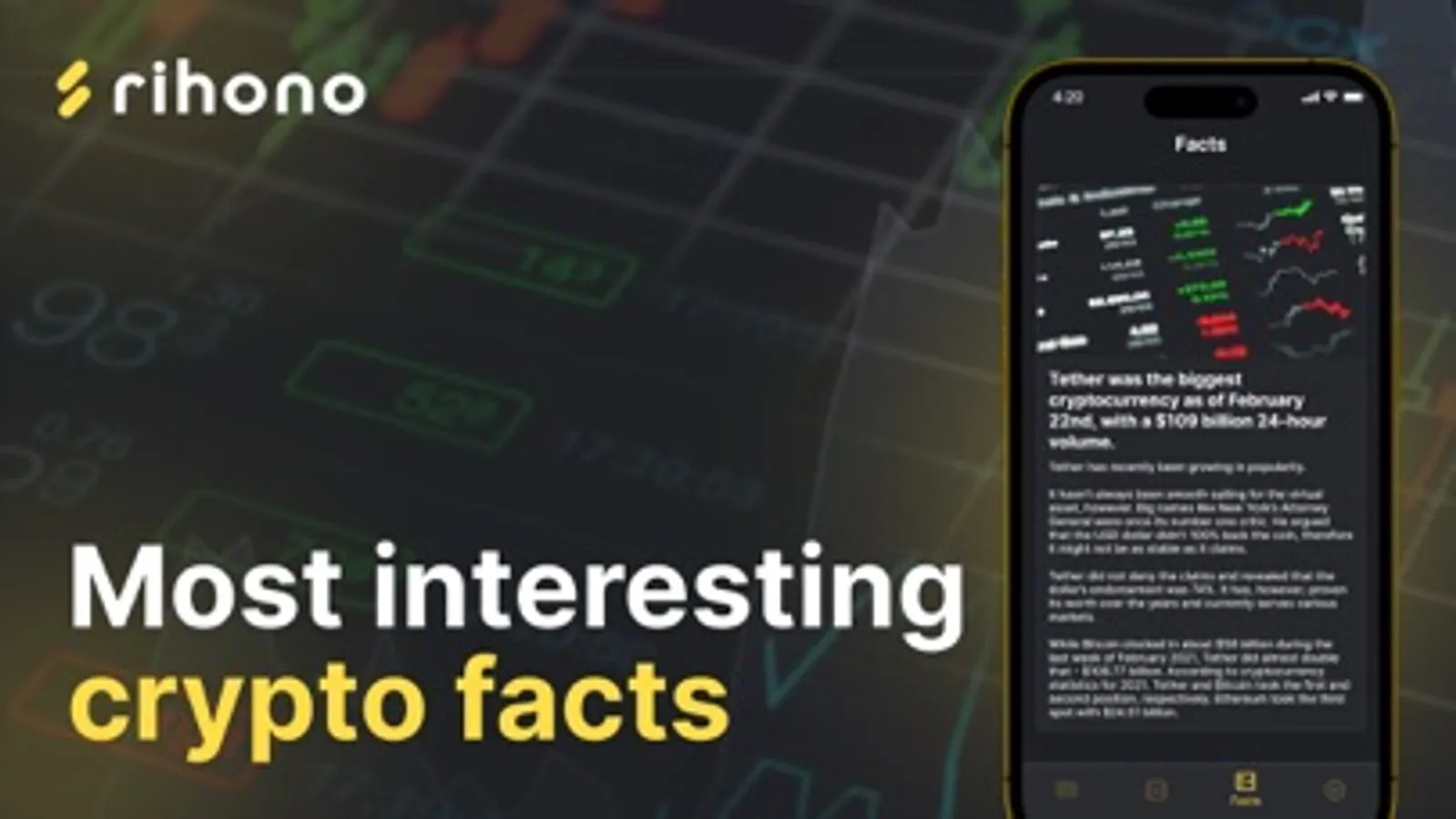 In this application, you can follow the latest news about the crypt and add interesting ones to your favorites. In addition, you can see which crypto is in which place in terms of volume and price in real time using the "Statistics" section. And finally, it is possible to track the weekly facts.
