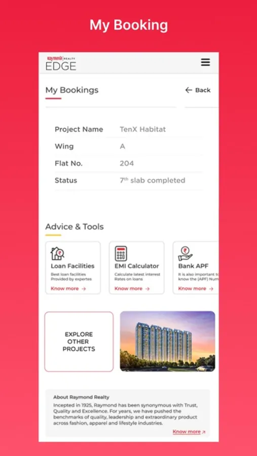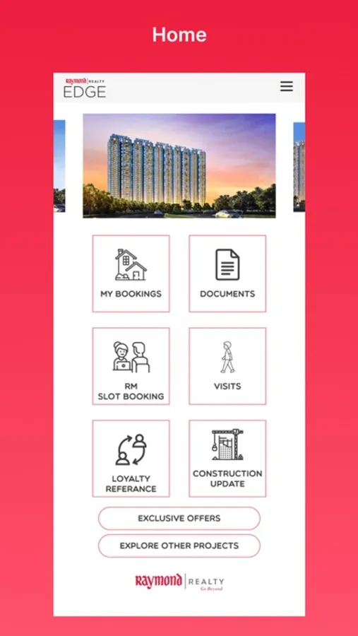 Presenting: Raymond Realty Edge is an exclusive app especially curated for the customers booked in the project/s of Raymond Realty.