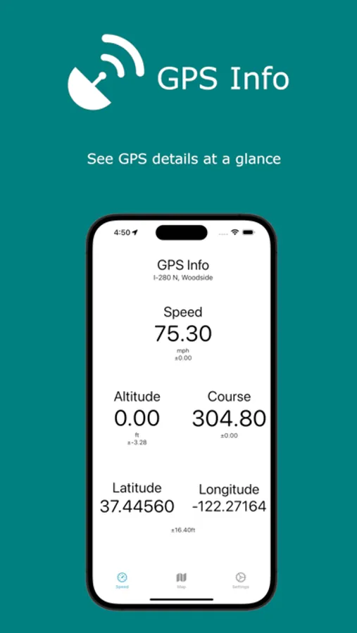 View where you are on a map, along with your speed, altitude, course and latitude & longitude.