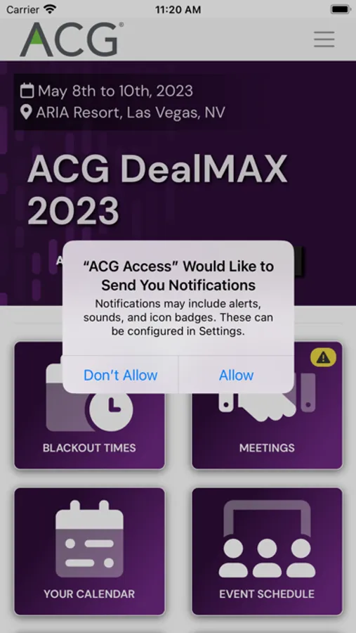 The ACG Access app for attendees at ACG events, including DealMAX, allows users to take the tools available in ACG Access’s online portal on-the-go. Users can schedule unlimited one-on-one meetings at their convenience, search highly detailed attendee profiles on demand to find exactly the right dealmakers you want to meet with, and keep an organized and comprehensive view of your days at the conference. App users can also message other attendees, manage their meetings onsite, and stay current on everything happening at the event.