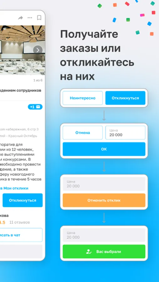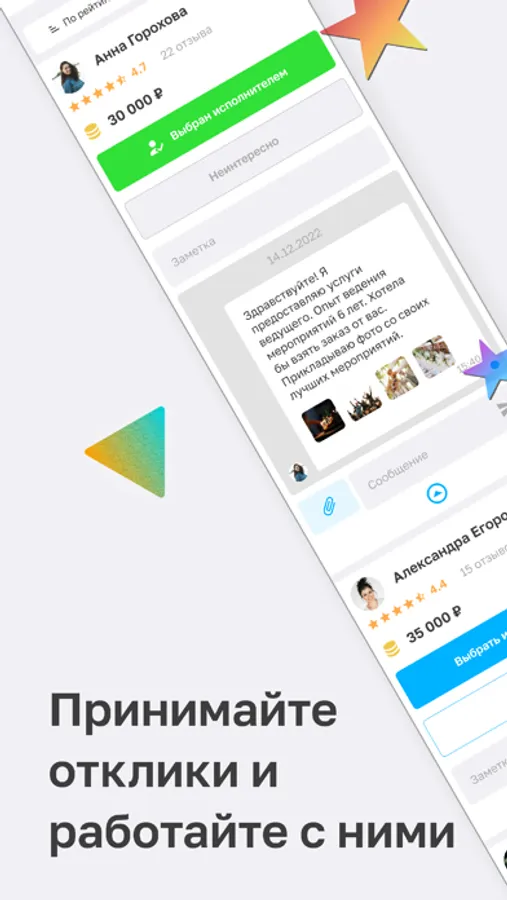 Опишите 1 раз, что вам нужно, а исполнители откликнутся сами.