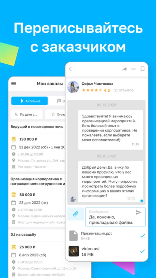 Для вашего удобства все чаты будут отсортированы по заказам.