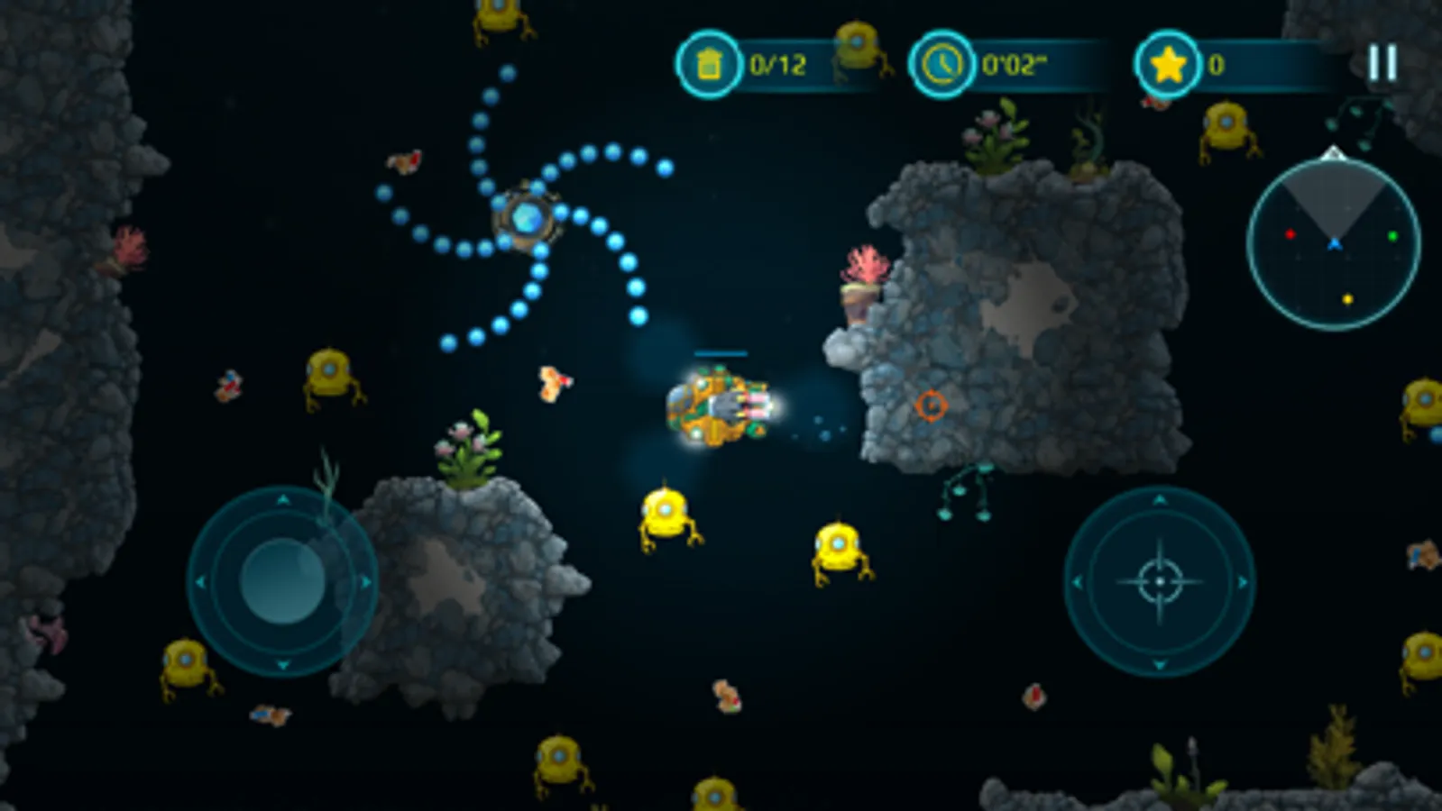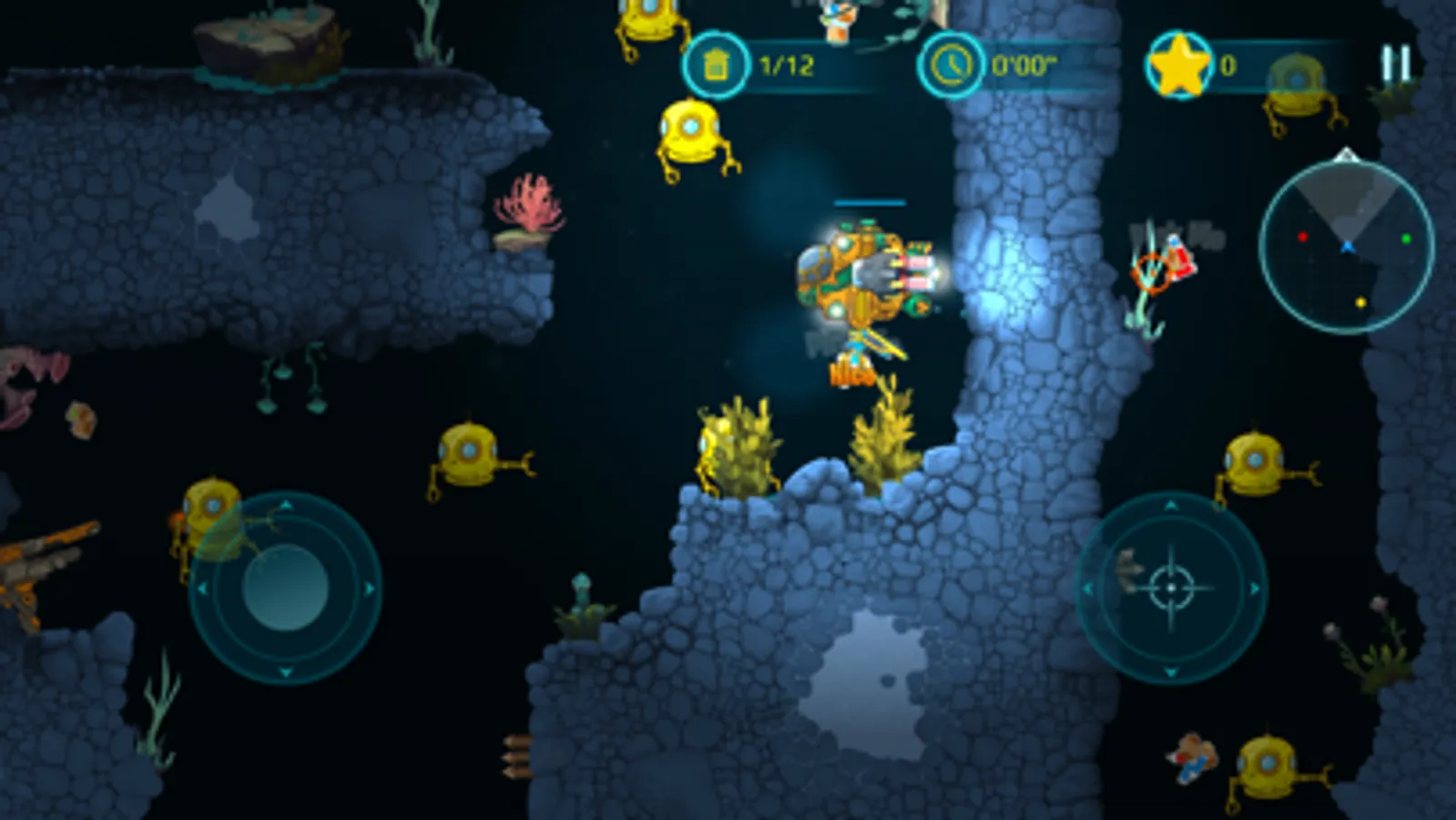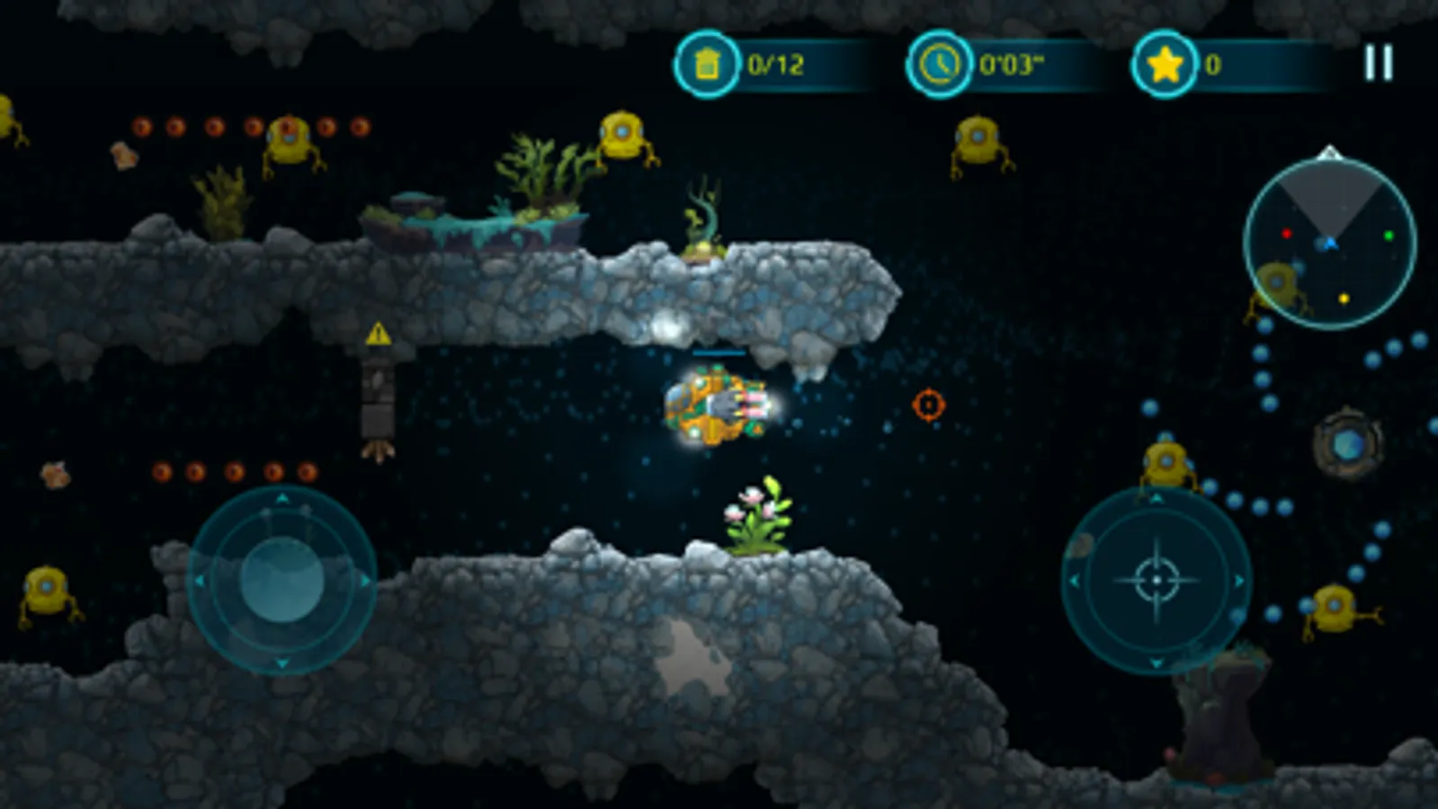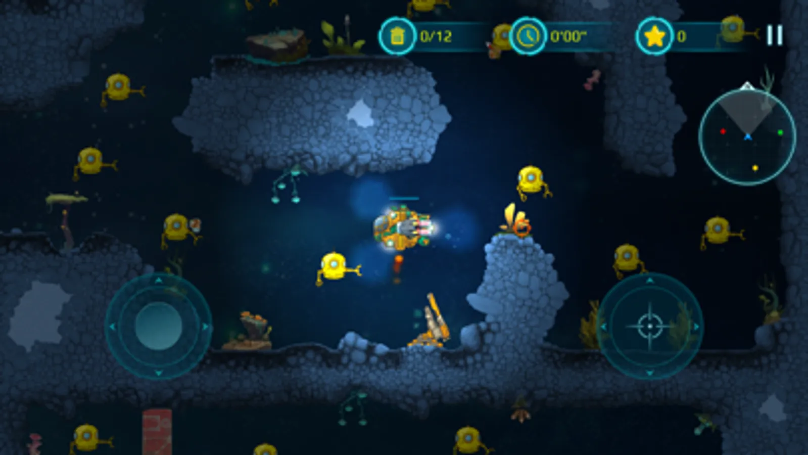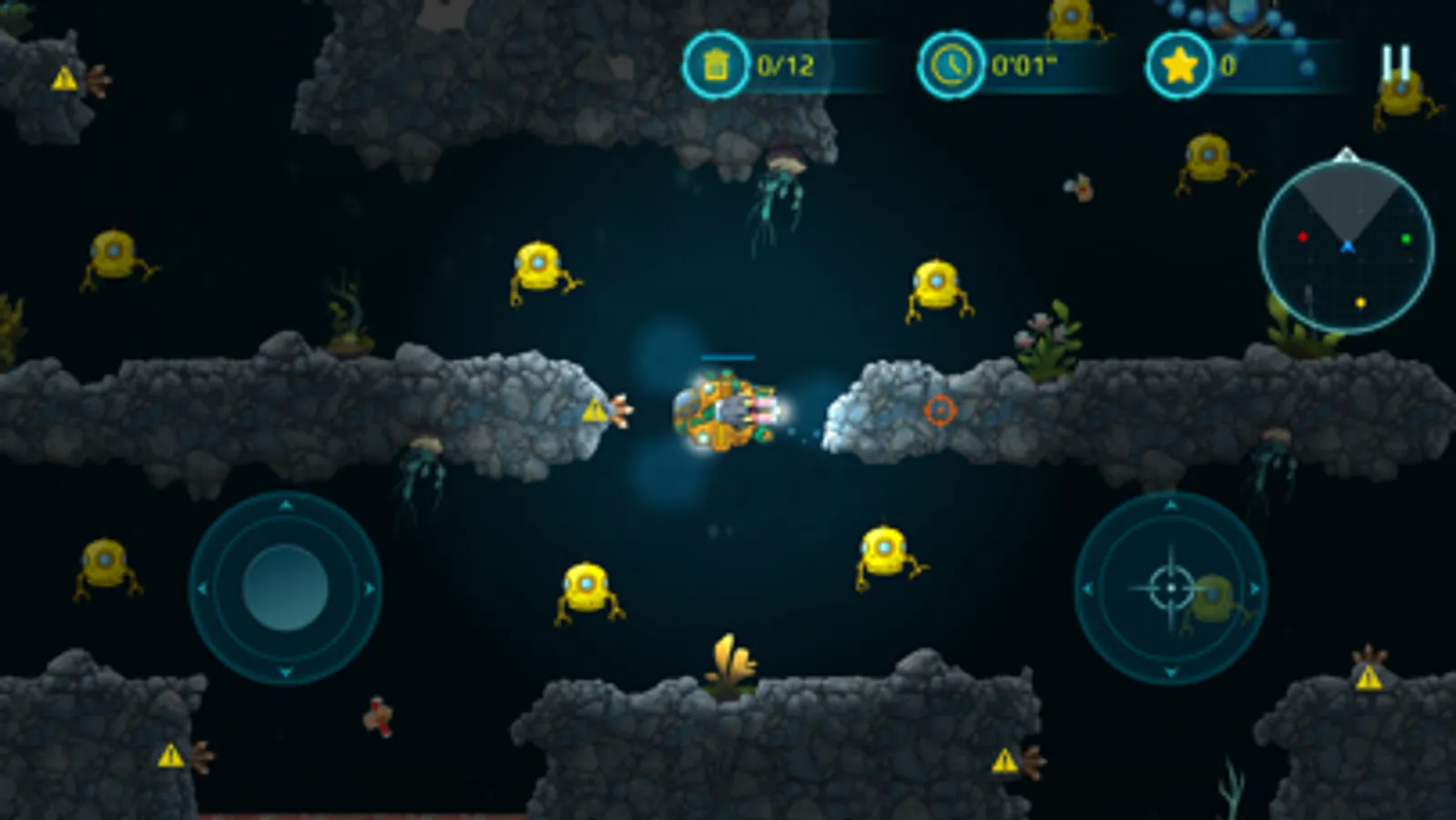 With a bright yellow submarine at your command, you'll venture deep into underwater caves and explore the mysteries of the ocean. Take on enemy creatures and defend yourself with powerful weapons, carefully avoiding the many hazards that lurk in the dark depths of the sea.