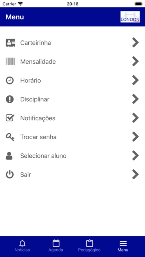 App do London School que permite consultas ao boletim, mensalidades, horário escolar, acompanhamentos disciplinares, além de possuir agenda escolar e painel de notícias para uma eficiente comunicação entre a escola, alunos e responsáveis.