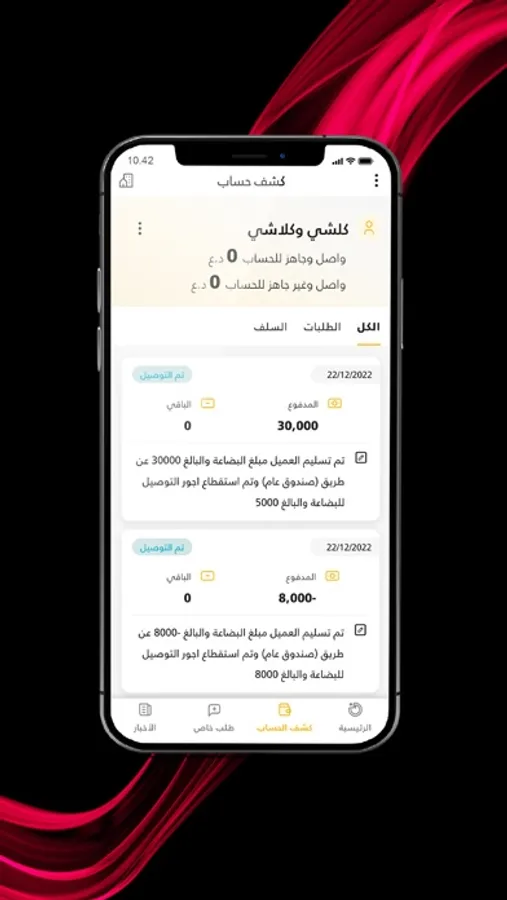 تطبيق خاص لأدارة طلبات التوصيل الخاصة بشركات الشحن يمكن استخدام النظام مع النظام المحاسبي المتكامل تبليغات واضافة ملاحظات على الطلبات والتحكم من قبل السائق والعميل وكشف حساب للتداولات المالية مع امكانية ارسال اخبار الى العملاء او السواق بالاضافة الى خصائص متعددة للنظام
