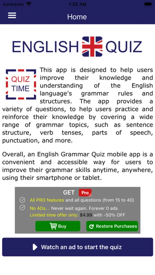 Overall, the English Grammar Quiz mobile app is a convenient and accessible way for users to improve their grammar skills anytime, anywhere, using their smartphone or tablet.