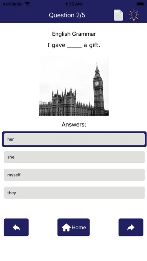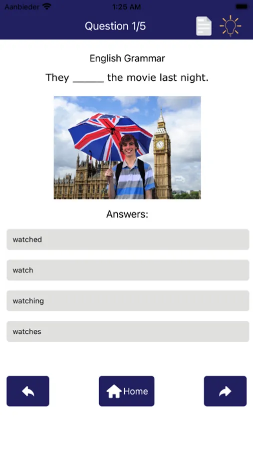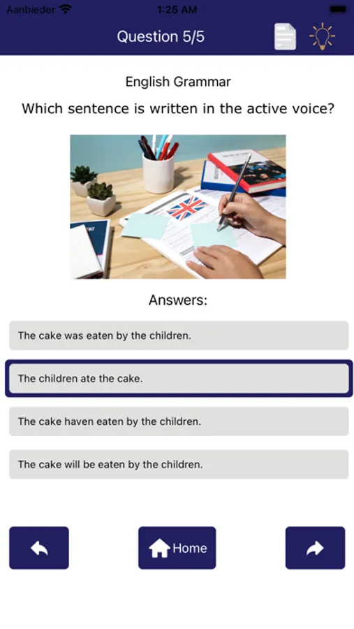 The app provides a variety of questions, to help users practice and reinforce their knowledge by covering a wide range of grammar topics, such as sentence structure, verb tenses, parts of speech, punctuation, and more.