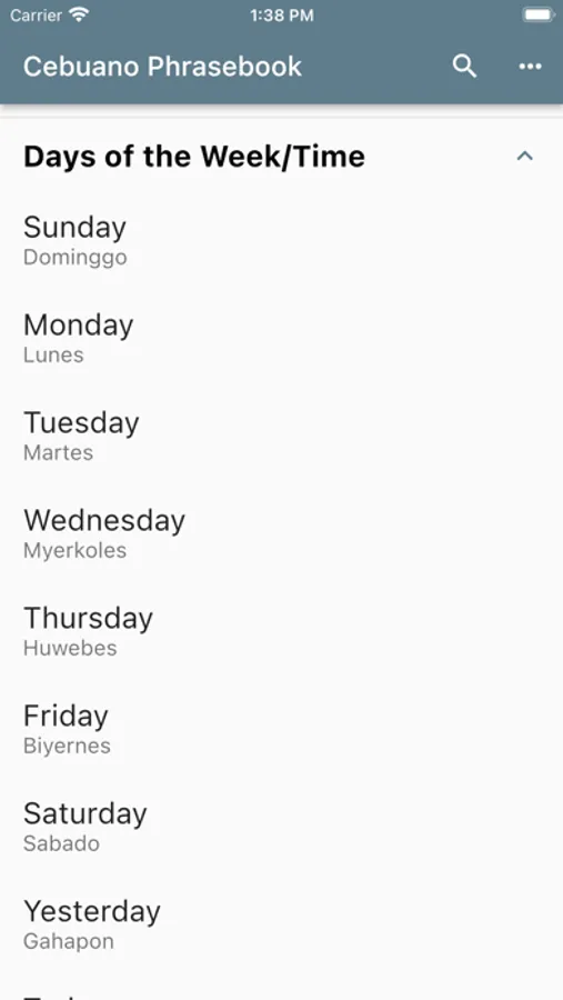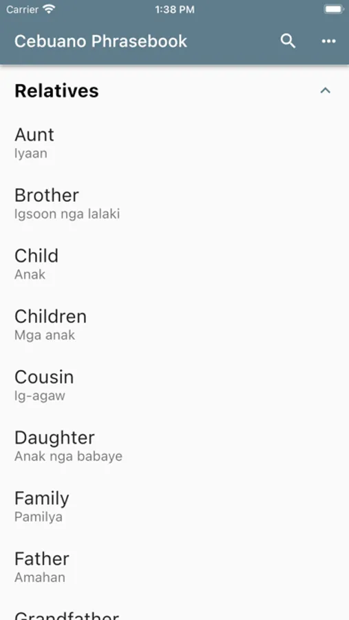 Using this app, you can select an English phrase and view its translation and how to pronounce it in Cebuano.