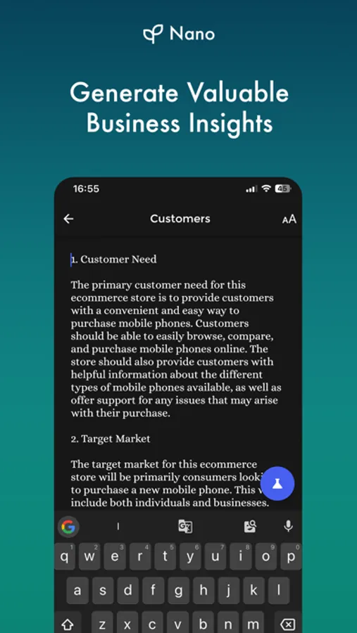 Nano is the ultimate tool for entrepreneurs and business owners who want to explore the potential success of their business in a simulated environment. Powered by AI, this app offers a comprehensive simulation experience that allows you to test different business strategies and see how they will impact your company's performance.